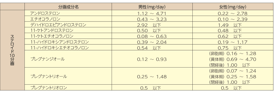 ステロイドを3,7および10分画に分け、副腎皮質機能異常を各分画の値により明確に評価が可能。