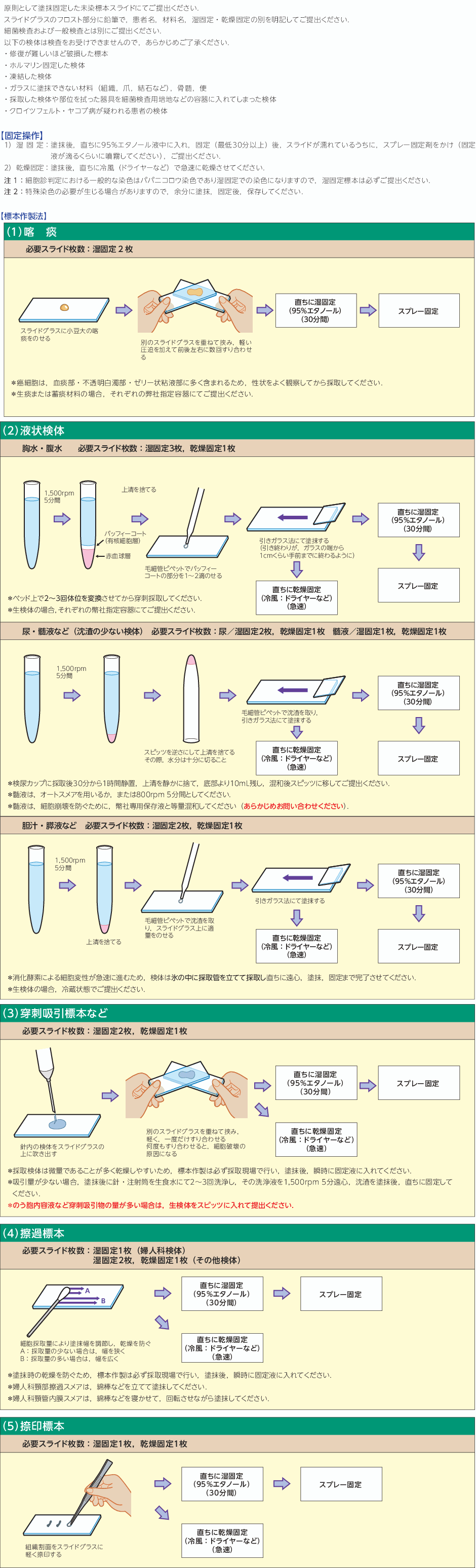 - 原則として塗抹固定した未染標本にてご提出ください。